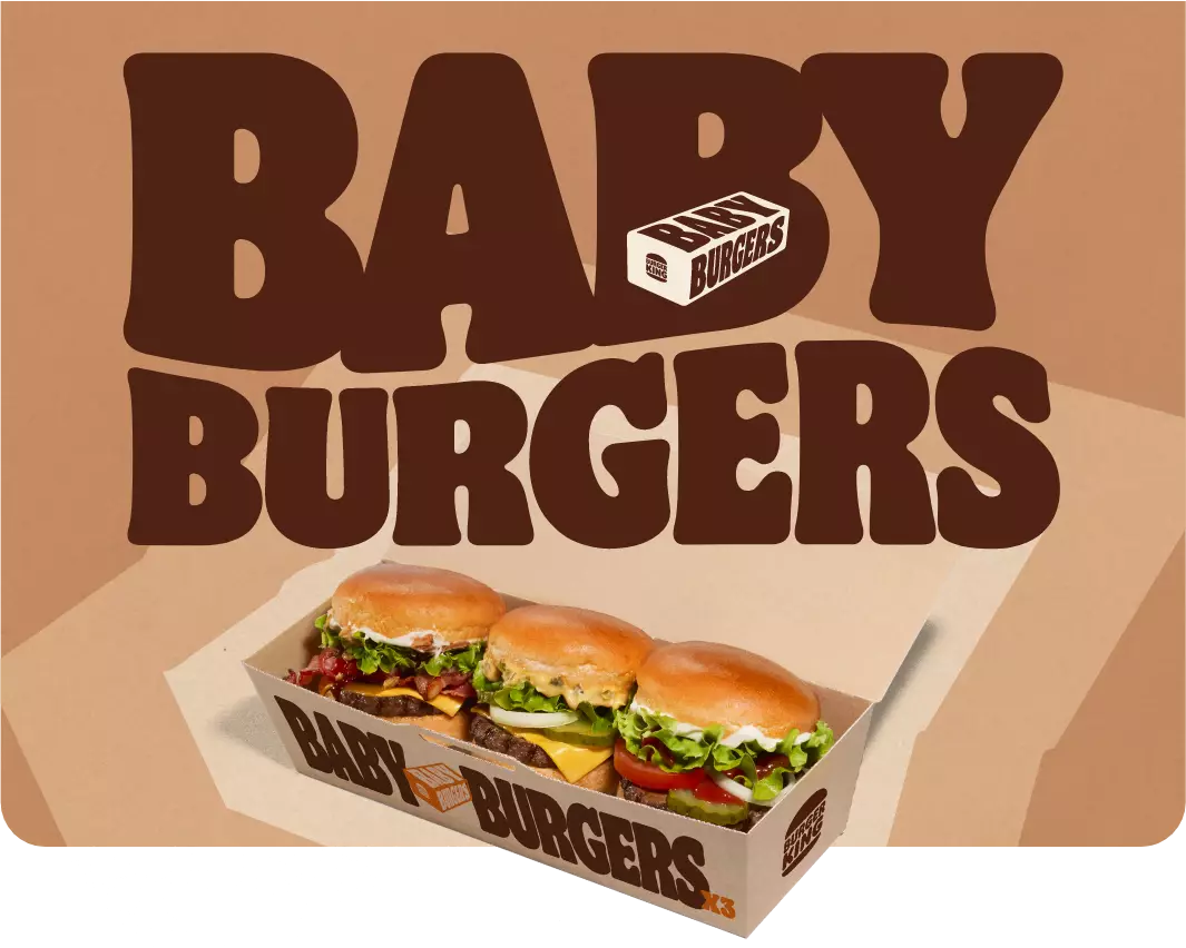 Oui oui, ils ont bien un petit air de famille avec nos 6 burgers iconiques. Imaginez le Whopper® , le Steakhouse , le Big King® , le Chicken Louisiane® , le Chicken Spicy et le Big King Chicken® emmitouflés dans un petit pain brioché.